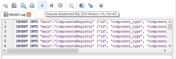 Click on Execute all/selected SQL to run the SQL code. This will install Frostburgh into the database.